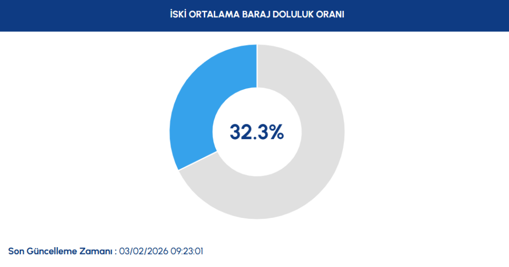 İSKİ, İstanbul’daki barajların doluluk oranlarını güncel olarak paylaşıyor. Ömerli, Elmalı, Terkos, Alibeyköy, Sazlıdere, Büyükçekmece, Istrancalar ve diğer barajlardaki su seviyeleri